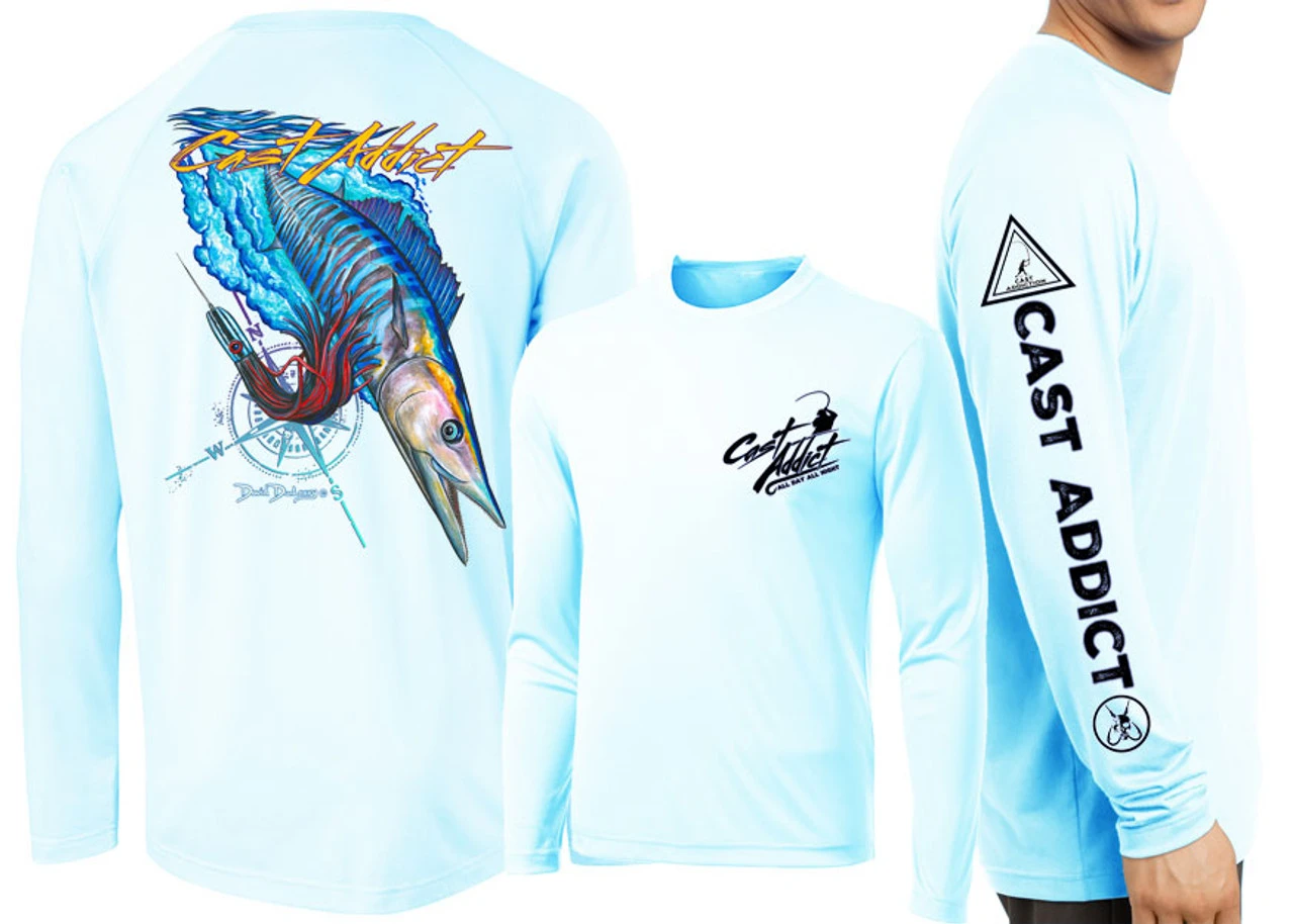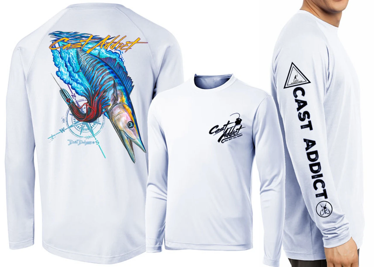 David Dunleavy Cast Addict Wahoo LS Performance Shirts feature world-renowned artist David Dunleavy’s stunningly realistic designs and keep you looking great while protecting you from the elements.