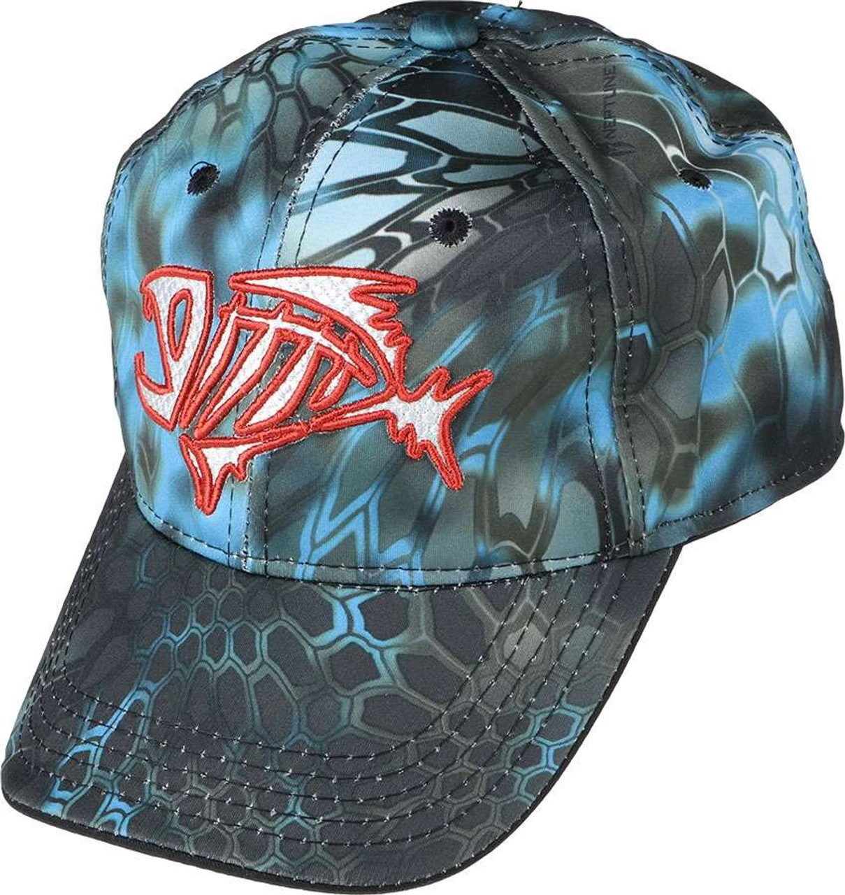 The G-Loomis Kryptek Camo Cap features a moisture wicking fabric and sweatband, a Velcro closure, and embroidered logos on the front, back, and under the visor. One size fits all.