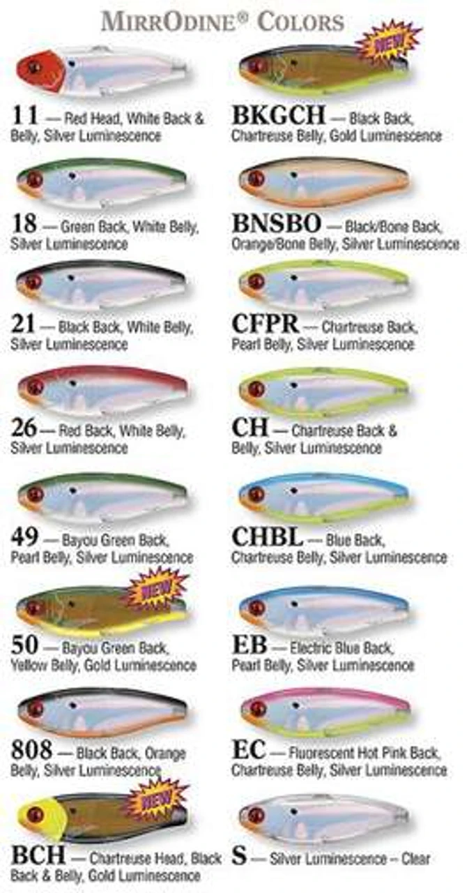 The ever popular MirrOdine family has a NEW brother, the NEW Heavy Dine. This new heavier version of the MirrOdine, casts great, and has a sink rate that is the same as our famous 52M series. MirrOdine Heavy Dine features: