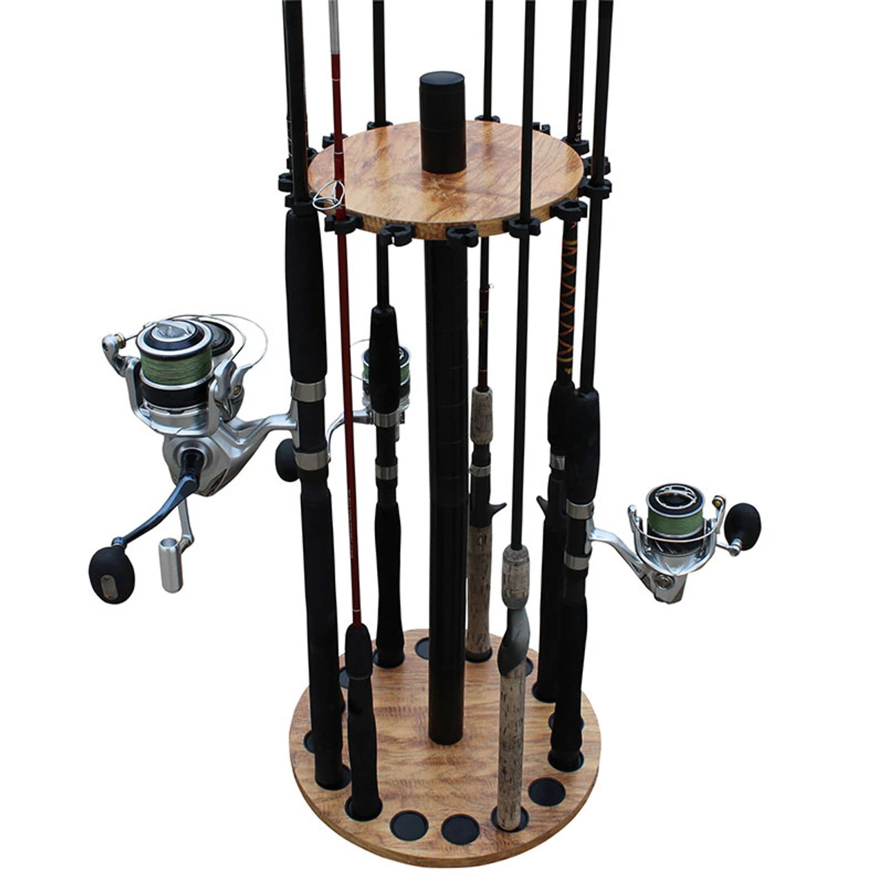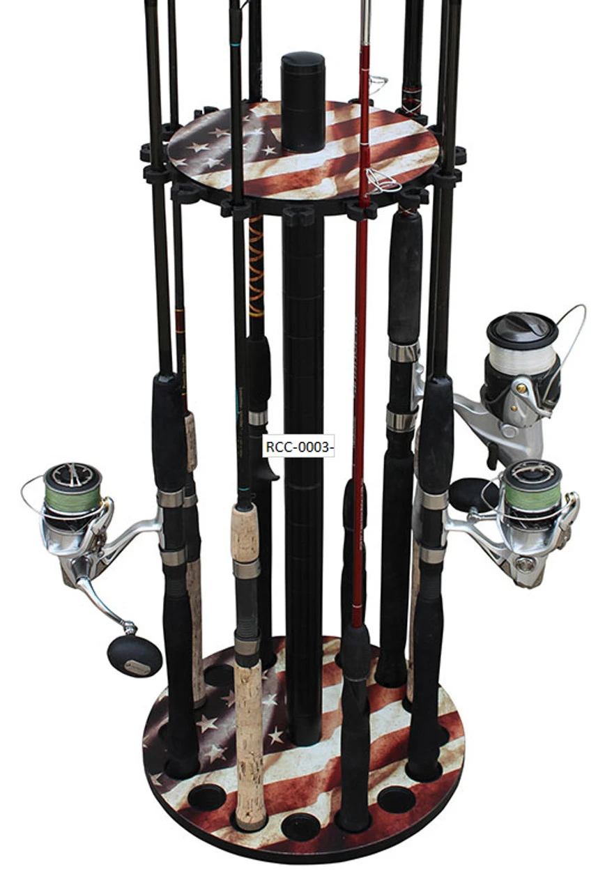 The Rush Creek Creations 16 Round Fishing Rod Storage Floor Rack is a unique, one of a kind rod rack. Caps on the base plate are designed to pool water that may be on your rod or reel. Featuring a heavy duty 38mm steel powder coated center post, adding to the durability of this rod rack. The top plate has 16 soft freshwater rod clips that are adjustable for any rod taper. This fishing rod rack is easy to assemble as no tools are required.