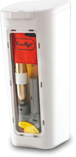 The Mounting Case for the ThrowRaft TD2401 is easily mountable on most center consoles, sailboat railings, bullheads, and dock pilings, providing quick and convenient access. This UV resistant container is made of strong ASA-geloy plastic that helps protect the ThrowRaft TD2401 from the elements. Includes hardware and a bulkhead mount. Made in the USA.