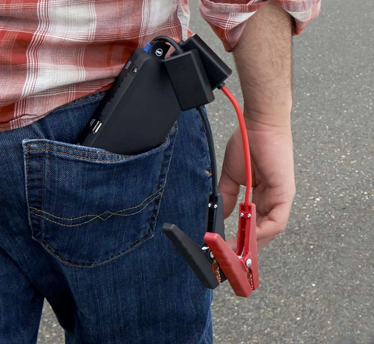 The Weego Heavy Duty Jump Starter Battery+ eliminates the need for jumper cables, bulky jumper packs, or calling for a tow. This jump starter is made with 12v lithium-polymer that can start your engine, charge your tablet, phone or other USB devices. Small enough to fit in your glove box or even your pocket. This jump starter includes everything you need for jumping and charging. It features built-in circuitry protections along with additional protections fuse & diode in the jumper cables to ensure your safety. This jump start battery loses only 5% charge per month when stored. It works for ATVs, cars, trucks, boats and even motorcycles.